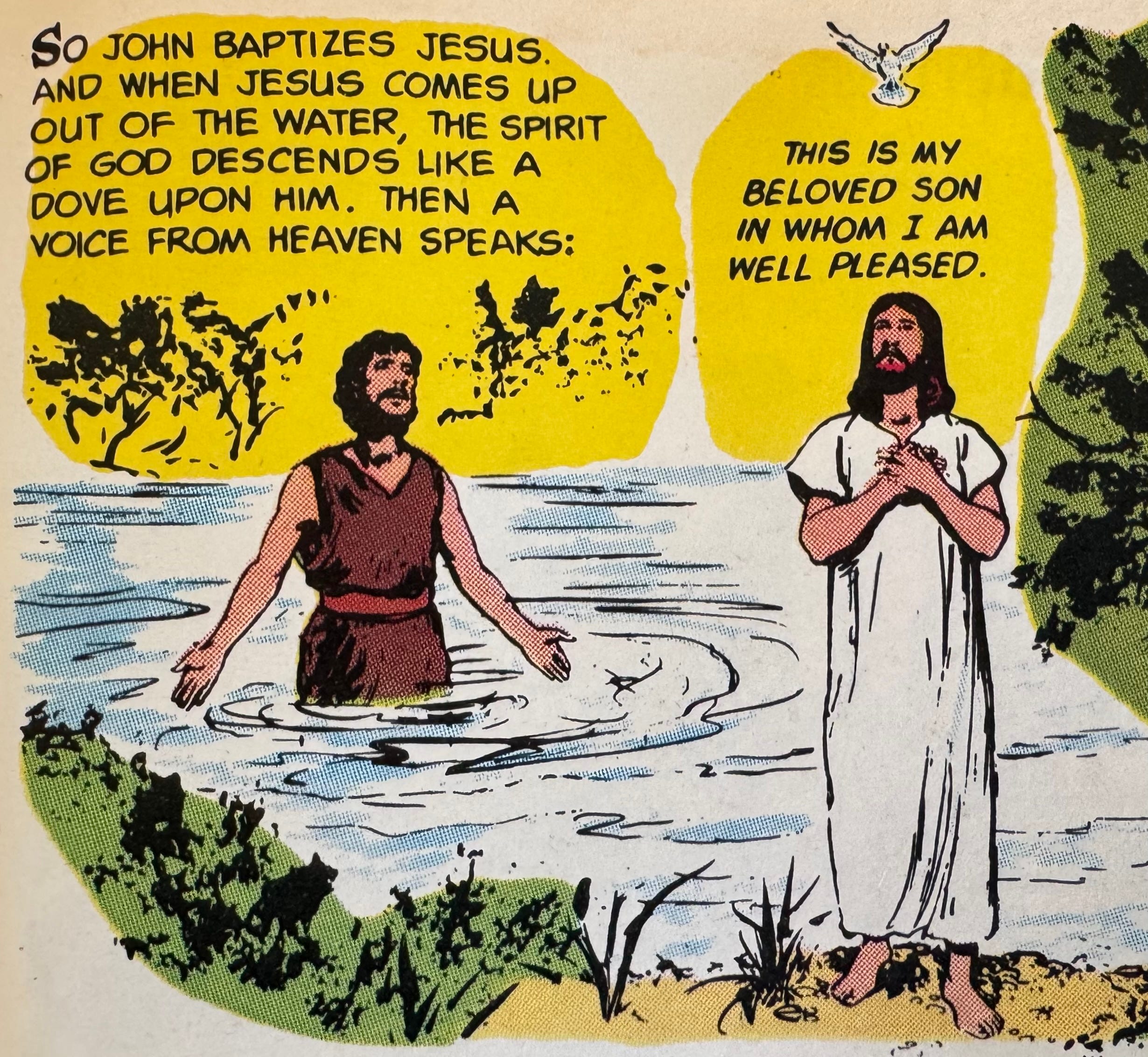 Jesus came from Galilee to John at the Jordan to be baptized by him. John tried to prevent him, saying, “I need to be baptized by you, and yet you are coming to me?” Jesus said to him in reply, “Allow it now, for thus it is fitting for us to fulfill all righteousness.” Then he allowed him. After Jesus was baptized, he came up from the water and behold, the heavens were opened for him, and he saw the Spirit of God descending like a dove and coming upon him. And a voice came from the heavens, saying, “This is my beloved Son, with whom I am well pleased.”